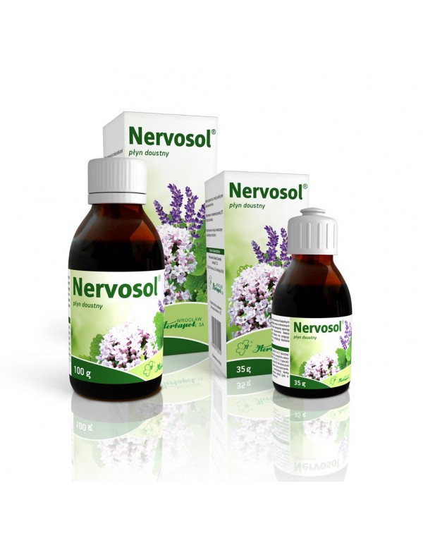 NERVOSOL zawiera średnio 53.5% (v/v) etanolu, tzn. ok. 2,16 g na dawkę, co jest równoważne ok. 50 ml piwa lub ok. 20 ml wina na dawkę. Nie zaleca się stosowania u osób cierpiących na epilepsję, choroby wątroby lub chorobę alkoholową.