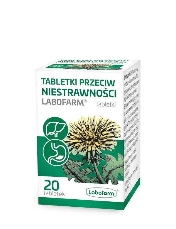 Tabletki przeciw niestrawności Labofarm są lekiem roślinnym wykazującym łagodne działanie rozkurczające, wiatropędne. Przyjmuje się, że produkt wzmaga wydzielanie soków trawiennych oraz żółci (poprzez pobudzenie czynności wątroby). Stosowany jest tradycyjnie w dolegliwościach związanych z zaburzeniami procesu trawienia, takimi jak: uczucie pełności w żołądku, wzdęcia, niewystarczające wydzielanie żółci i soku żołądkowego.